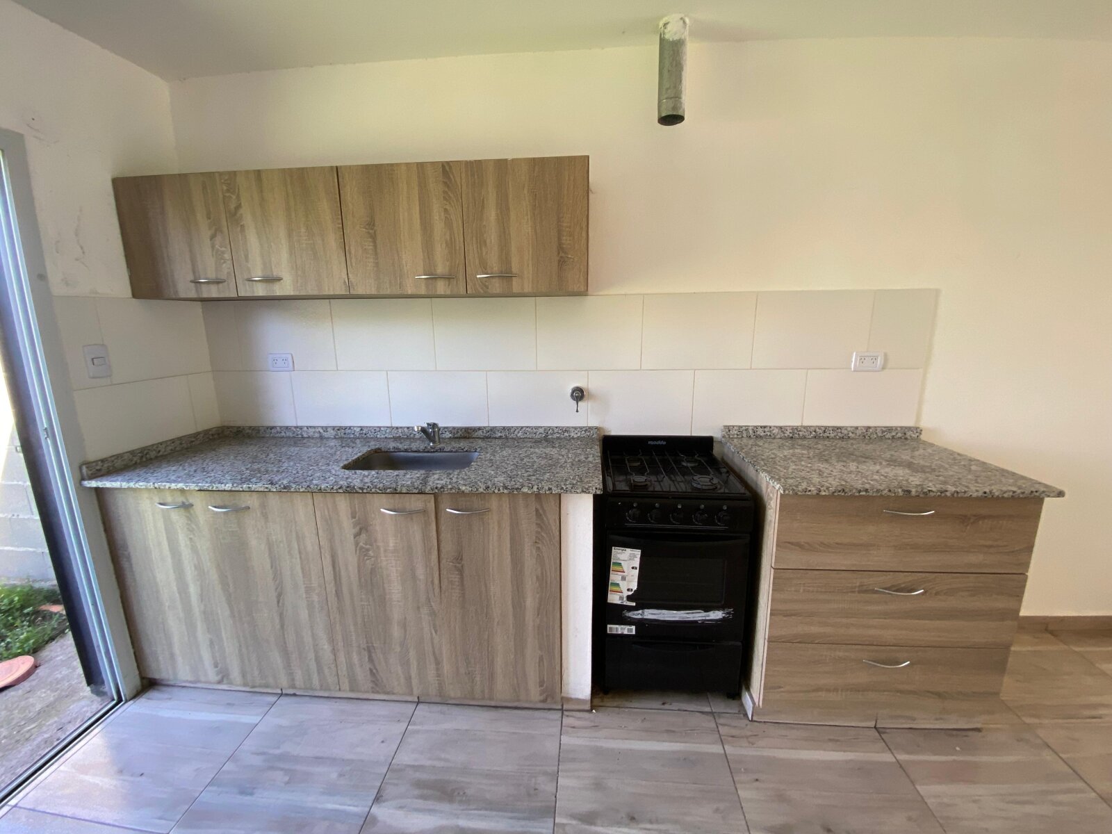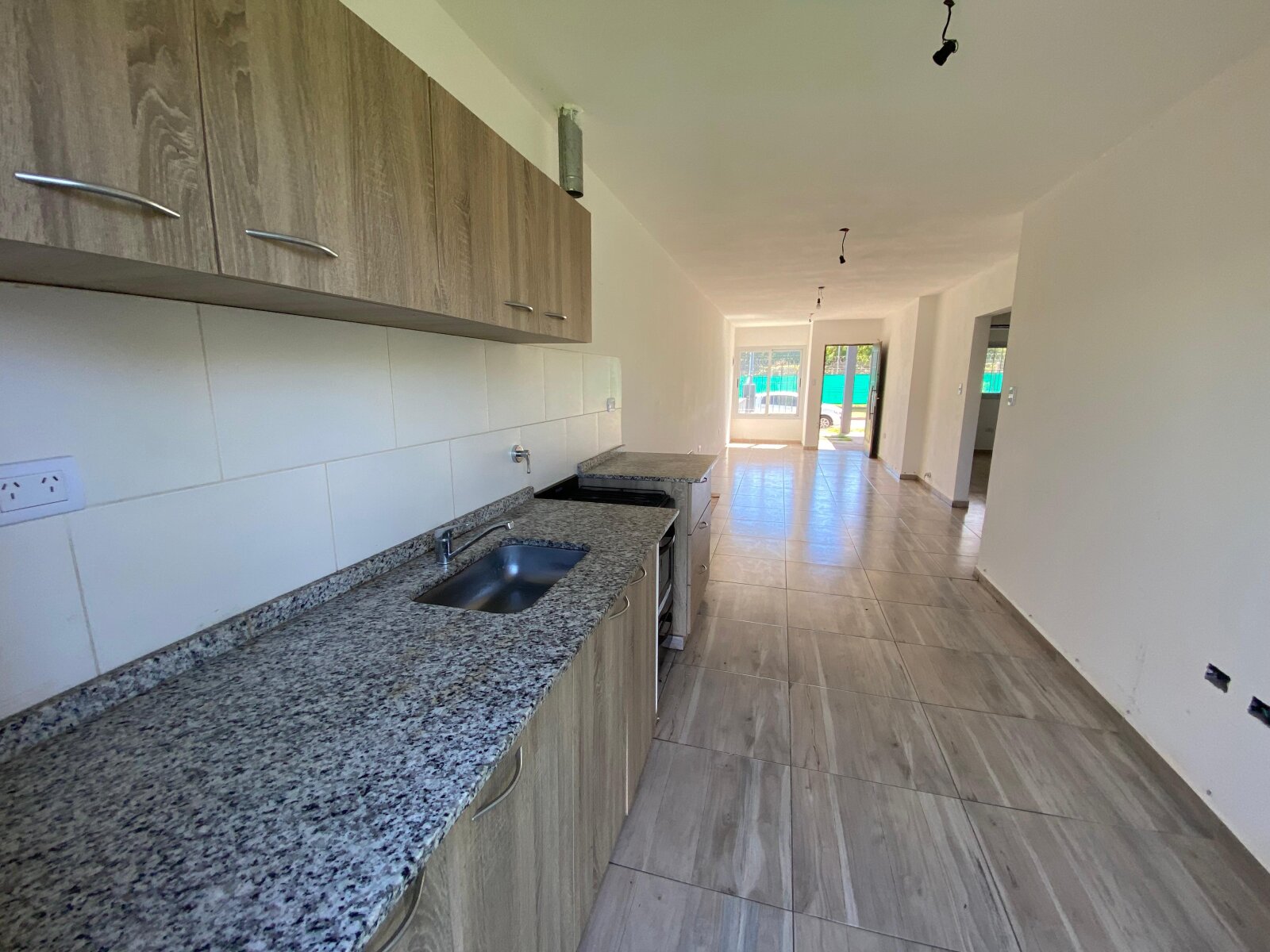 Ambientes bien resueltos: cocina-comedor de 12 x 3 m, luminosa y funcional, que conecta con un patio de césped de 6 x 10 m ideal para disfrutar al aire libre.